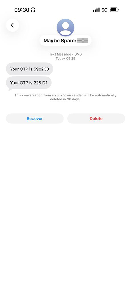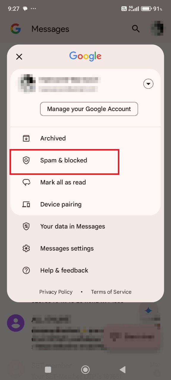 3. ตรวจสอบในกล่องข้อความ SMS ว่ามีการ Block SMS จากทาง บล. กรุงศรี (Sender Name: KSS/KCS) ไว้หรือไม่