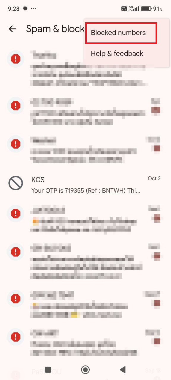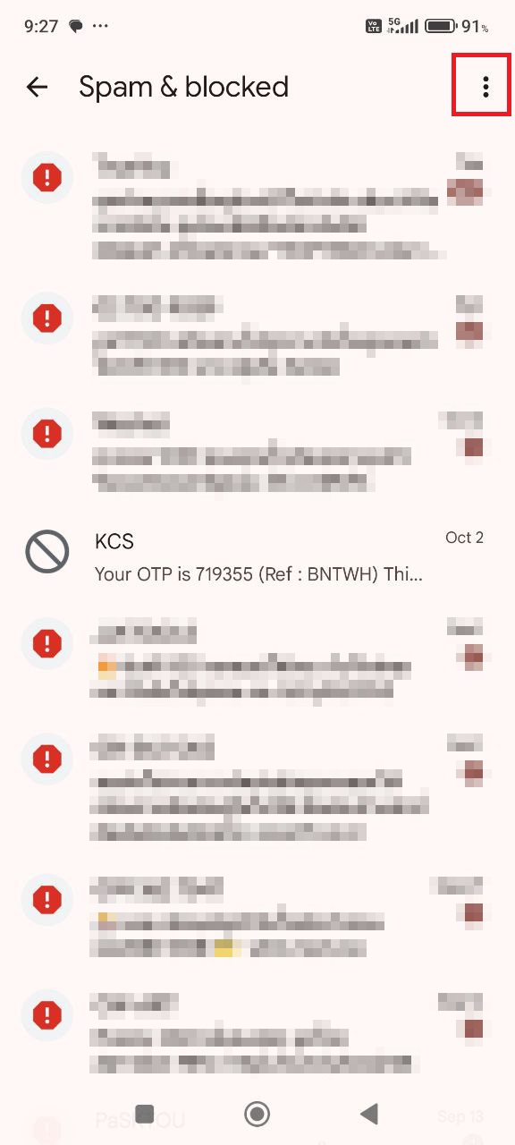 4. ที่มุมขวาบน คลิกที่จุดสามจุด แล้วเลือก Blocked numbers