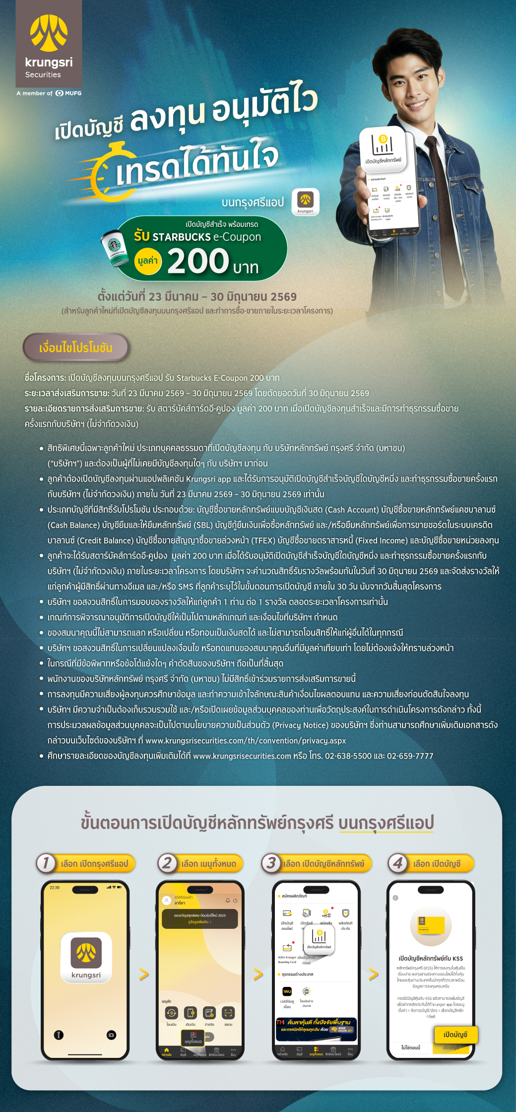 โปรโมชัน เปิดบัญชีหลักทรัพย์ ผ่านช่องทาง krungsri app